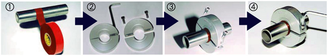 4、 測(cè)量量子管通環(huán)內(nèi)徑,并將量子管通環(huán)拆開后套于管道外壁,觀看產(chǎn)品和管壁的間隙,以便決定所需絕緣膠帶的厚度及墊片厚度。